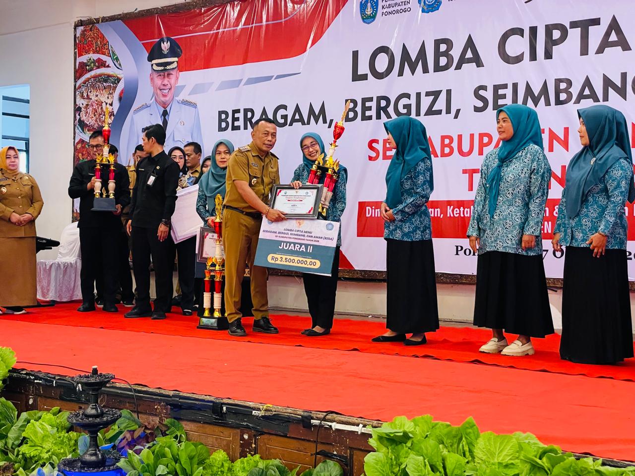 PONOROGO I binadedesakuid – Raih penghargaan terbaik, pemerintah Kecamatan Ngrayun, Kabupaten Ponorogo, Provinsi Jawa Timur raih juara II dalam lomba Cipta Menu dalam Beragam, Bergizi, Seimbang, dan Aman (B2SA) tingkat Kabupaten Ponorogo tahun 2025. Kegiatan lomba berlangsung di Gedung Sasana Praja Ponorogo, Senin (27/10). diikuti oleh seluruh kecamatan se-Kabupaten Ponorogo.