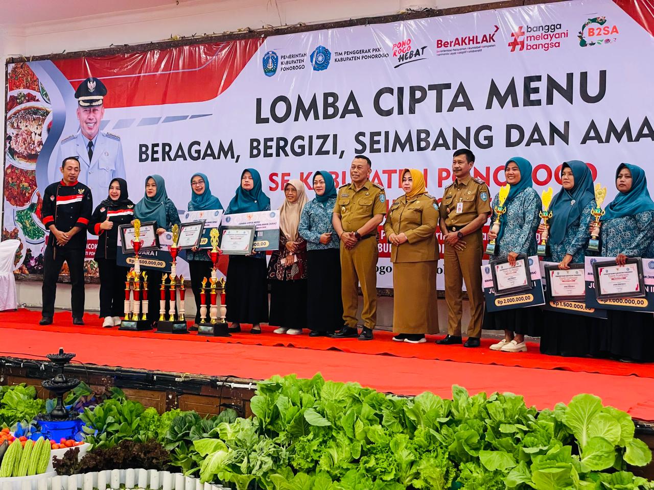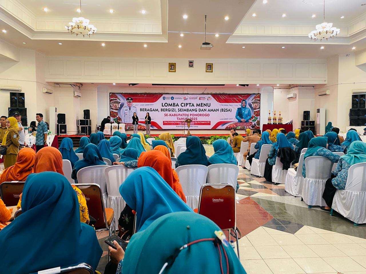 Kegiatan Lomba Cipta Menu B2SA tahun 2025 diselenggarakan oleh Dinas Pertanian, Ketahanan Pangan dan Perikanan Kabupaten Ponorogo ini, di hadiri secara langsung, Kang Bupati Sugiri Sancoko, Wakil Bupati, Bunda Lisdiarita, Forkopimda, Ketua dan Pengurus TP PKK Kabupaten Ponorogo, jajaran Camat serta pengurus PKK se- Kabupaten Ponorogo.